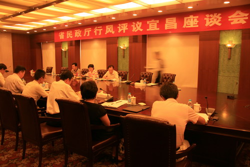 7月29日-30日,省民政厅副厅长余琳一行来宜昌检查指导民主评议政风行风工作,先后实地查看了窗口单位,召开了局领导、机关科室和部分基层民政单位负责人座谈会。