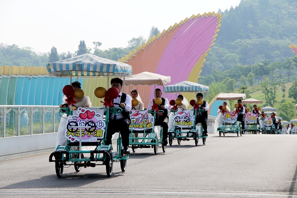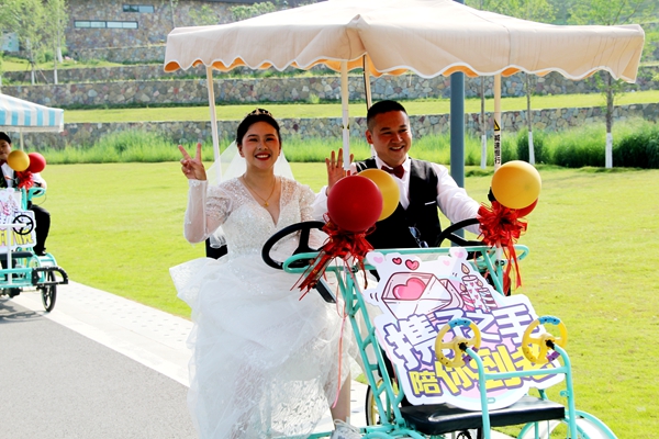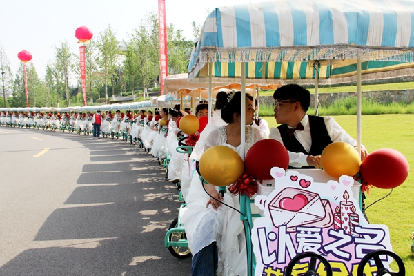 活动在城市环游环节中拉开序幕,新人们乘坐装饰着传统喜字与现代光影元素的花车,共览宜昌城市变化、山水之美,同时让市民共同见证这场爱的盛会,将这份爱传递给更多人。随后,新人们来到卷桥河旁屈原文化馆,点军区民政局临时在馆内设置了婚姻登记处,新人们在这里打卡拍照,登记领证,正式开启人生新旅程。“爱情长路・骑行共进”环节,新人们骑着双人自行车,在卷桥河湿地公园内向着主会场一路前行,微风轻拂,欢声笑语回荡在空气中,象征着他们携手共进、相互扶持的决心。