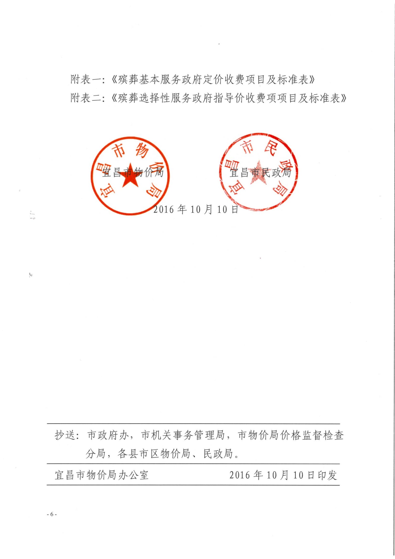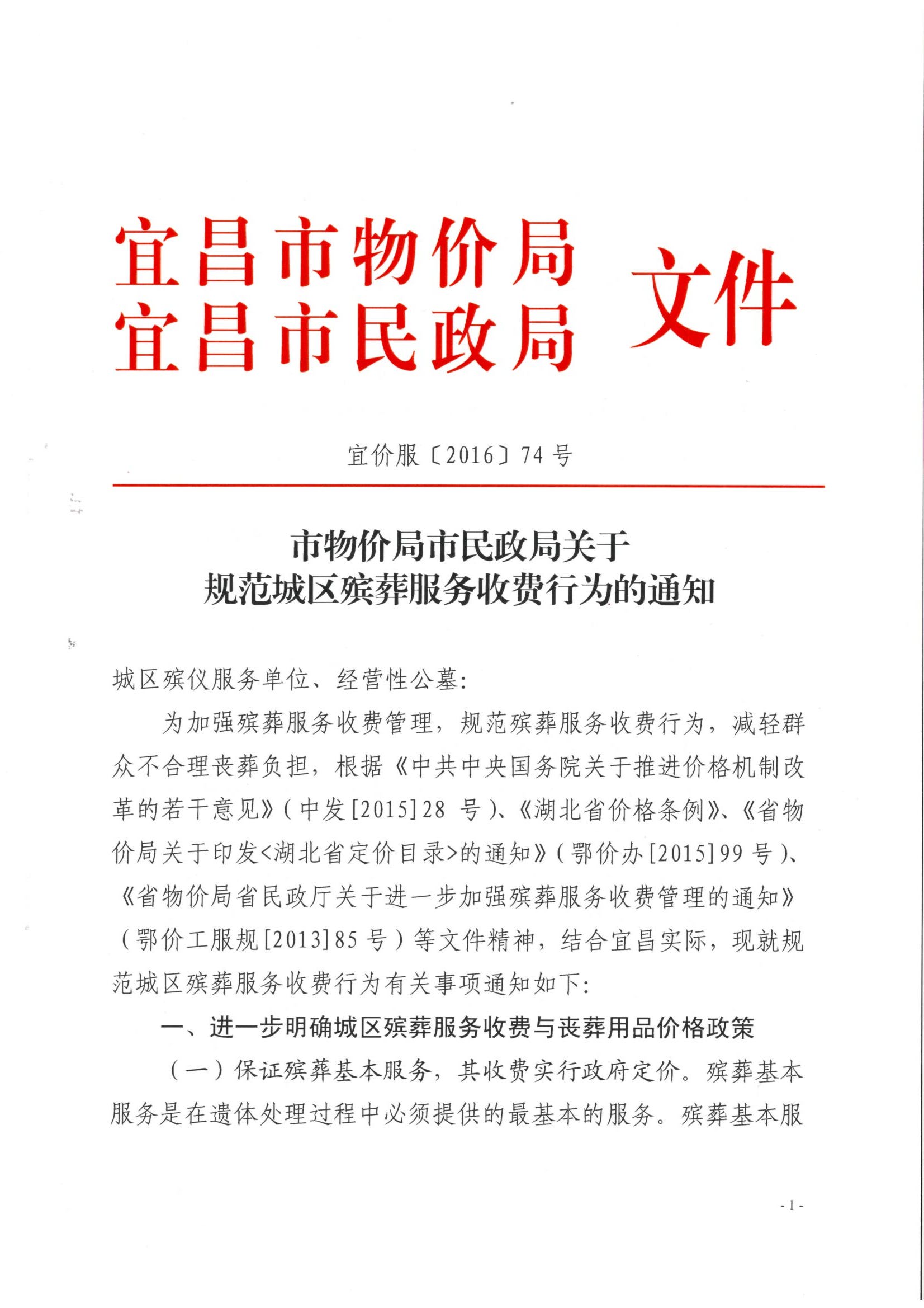 市物价局市民政局关于规范城区殡葬服务收费行为的通知(宜价服[2016]74号)