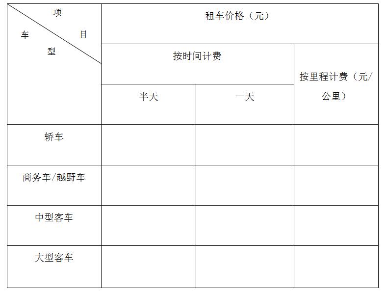 (二)各类车辆租车价格、品牌型号等。报价须在《宜昌市市级党政机关租用社会车辆管理办法的通知》(宜车改组发[2019]1号)中确定的租赁限价标准以内。