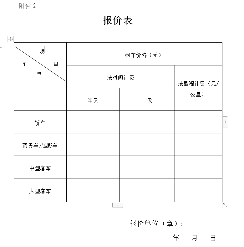 (二)各类车辆租车价格、品牌型号等。报价须在《宜昌市市级党政机关租用社会车辆管理办法的通知》(宜车改组发[2019]1号)中确定的租赁限价标准以内。