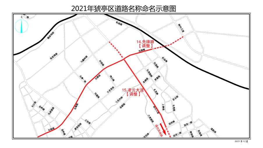 凌云大道:马鬃岭路至民族路(规划名),调整起点,延伸止点,保持道路完整性。