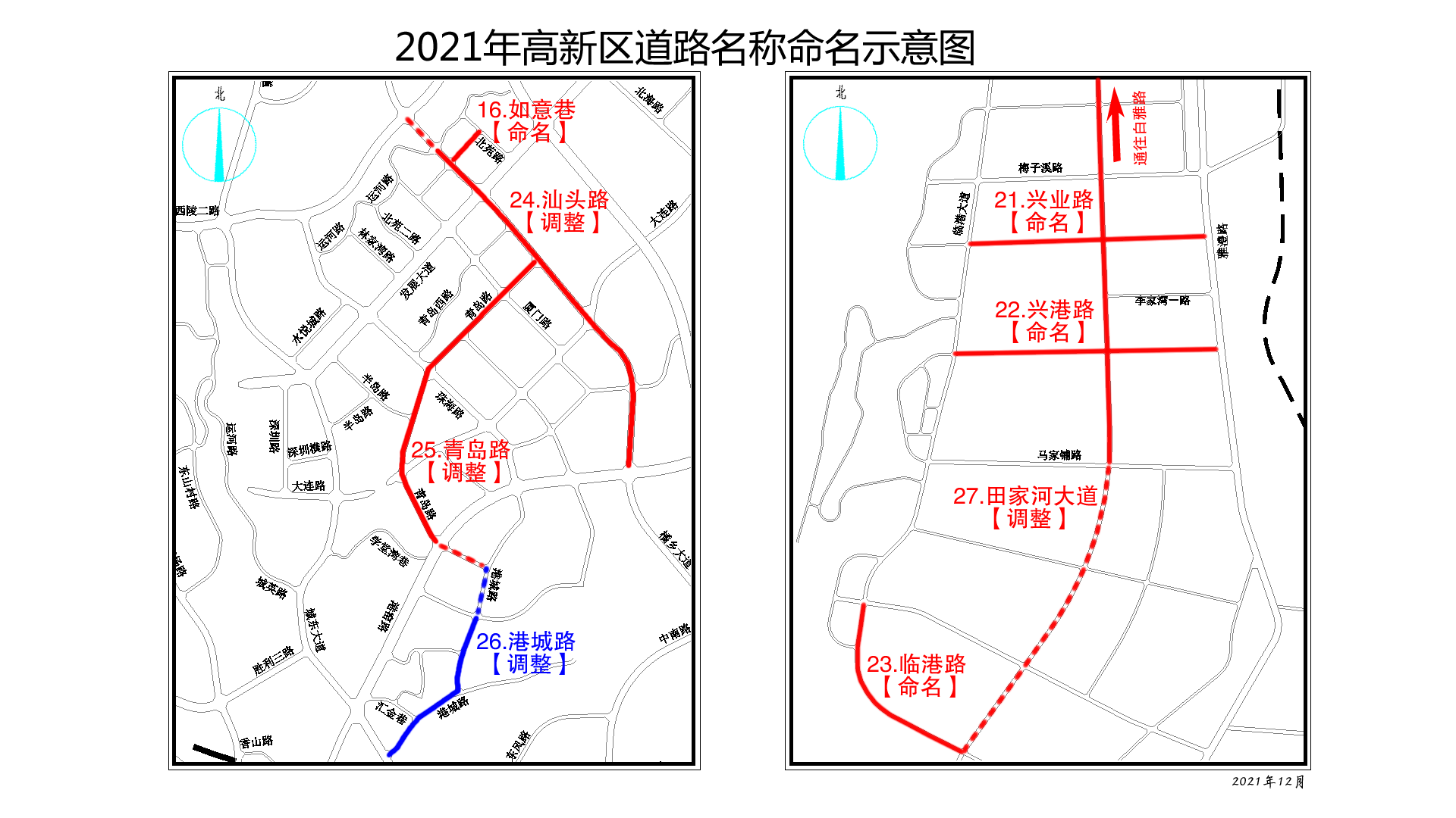 田家河大道:白雅路至临港路,原田家河路,经改扩建后,道路等级提升符合大道命名要求。