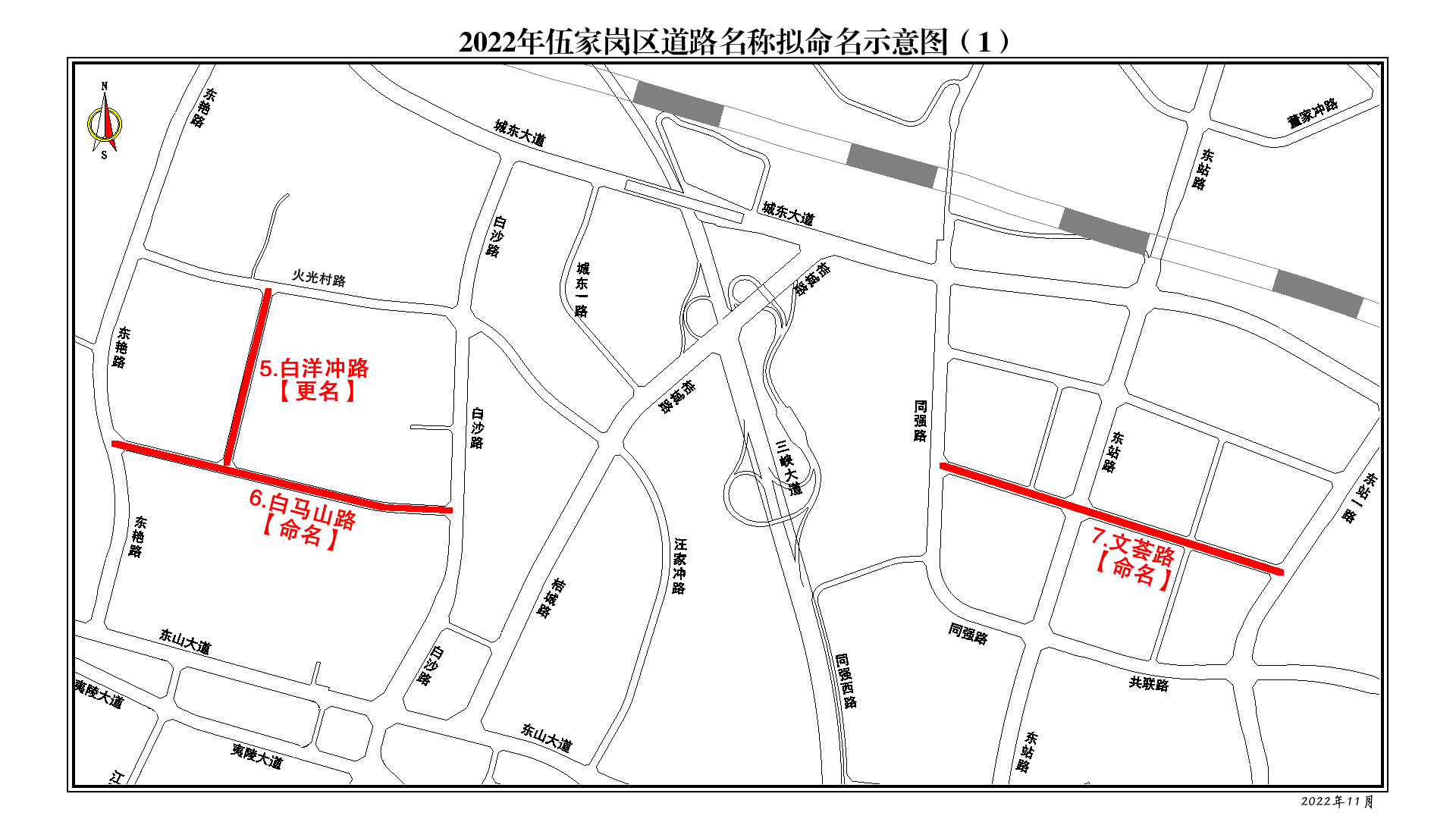 文荟路:同强路至东站一路,寓意人文荟萃。
