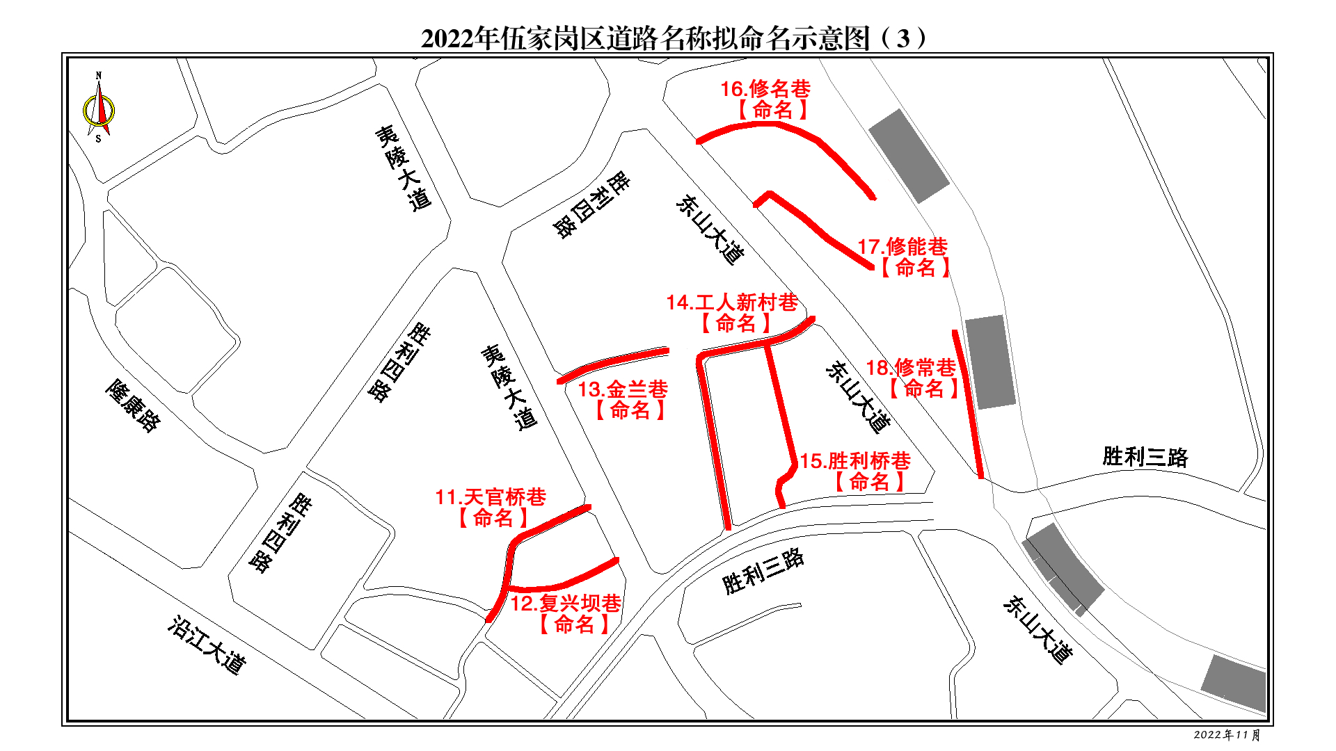 工人新村巷:胜利三路至东山大道,引用老地片名。