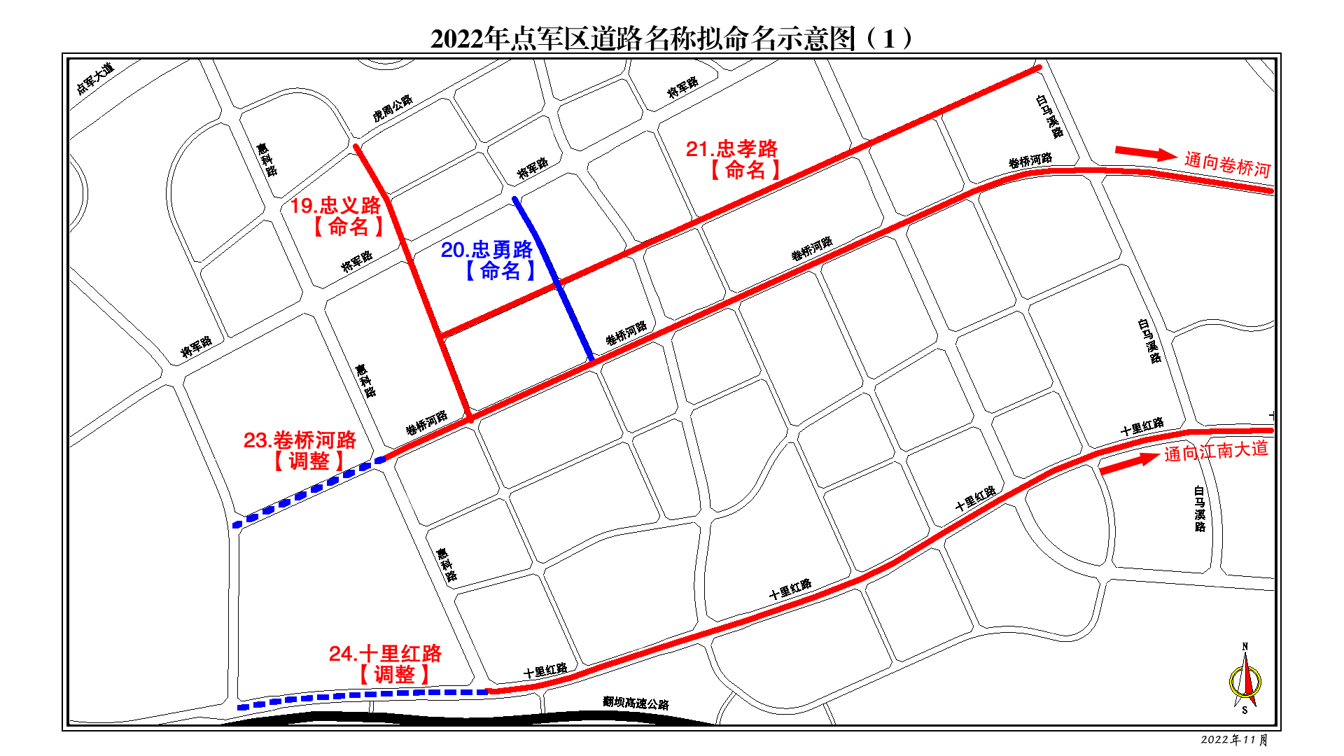 忠勇路:将军路至卷桥河路,寓意忠诚勇猛,呼应点军“三国文化”。