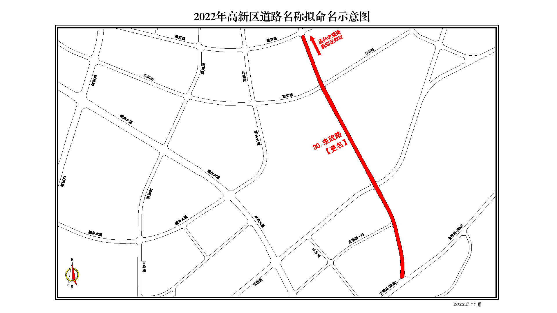 杨子坪路:橘颂大道至东方大道,由原郭家湾一路更名。