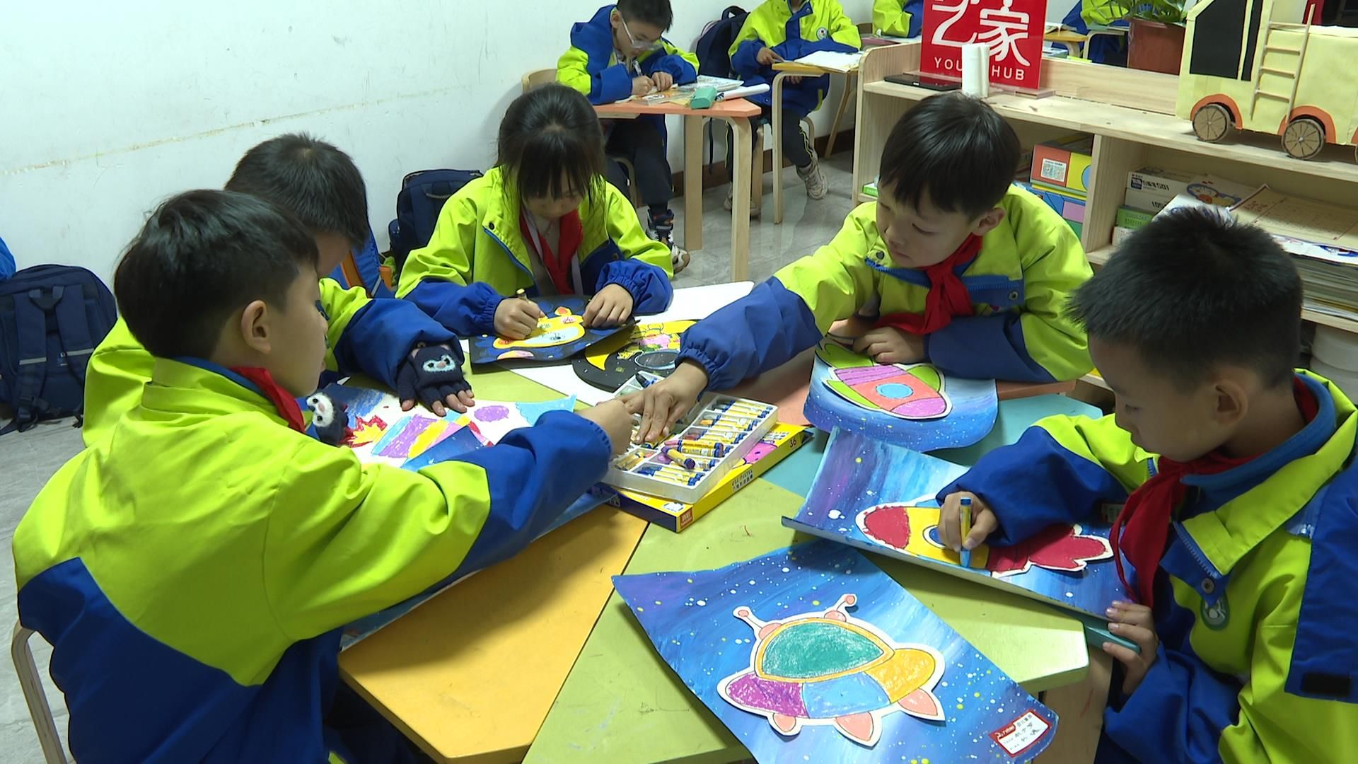 傍晚时分,位于马家店街道七口堰社区铂悦府小区的“枝”慧娃学堂里异常热闹,两间面积不大的教室里挤满了小朋友。孩子们在志愿者的指导下看书、写字、画画,度过放学后的愉快时光。