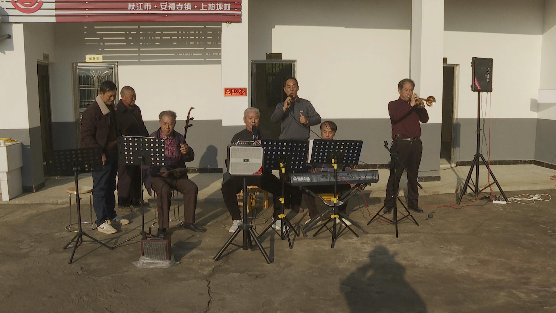 “听吧新征程号角吹响,强军目标召唤在前方……”11月25日,走进枝江市安福寺镇上柏坪村互助照料中心,管理员甘福修正组织一群“银发”朋友们排练曲目《强军战歌》,器乐声与演唱声相和,传出阵阵铿锵有力的律动,吸引邻里乡亲们前来观看。