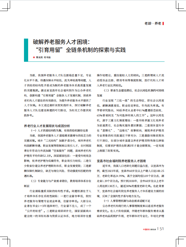 中国民政:《破解养老服务人才困境: “引育用留”全链条机制的探索与实践》