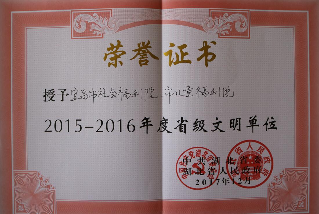 宜昌市社会福利院荣获“2015-2016年度省级文明单位”称号