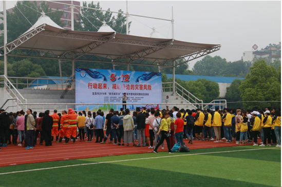 演练针对社区特点,按照《体育场路社区地震应急预案》开展地震紧急避险、应急疏散、人员搜救和医疗救护演练,由市地震局担任总指挥,模拟我市西陵区发生5.0级地震,震源深度10公里,西陵区体育场路社区出现强烈震感,湖北三峡职业技术学院教学楼震感强烈,师生躲在课桌、承重墙墙角或开间小的房间内紧急避险。待震感减弱,听到撤离信号后师生有序撤离至应急疏散点。