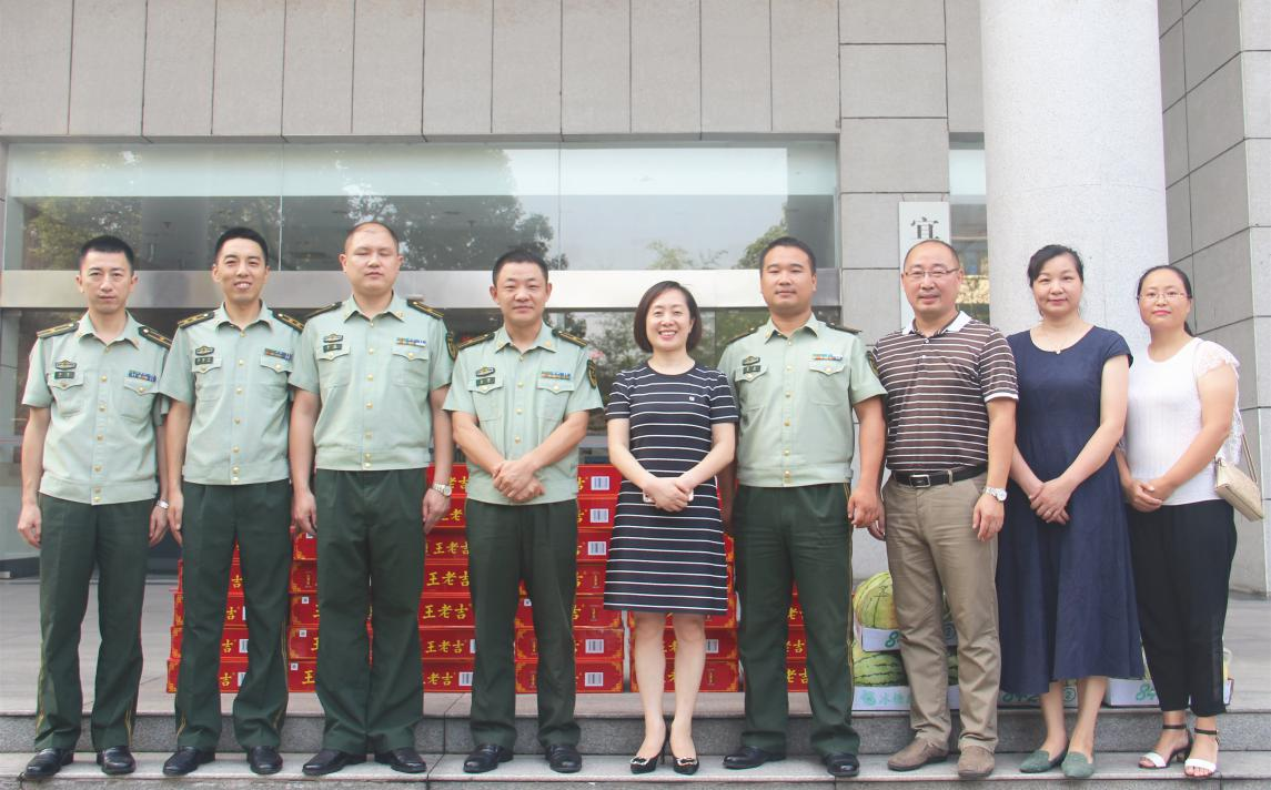 本网讯(通讯员 靳红宇)在“八一”建军节即将来临之际,宜昌市社会福利院院长熊长英一行带着对人民子弟兵的深情厚谊来到宜昌市消防支队,为消防官兵送上消暑降温的慰问品,以此表达对消防官兵的节日问候和美好的祝愿。