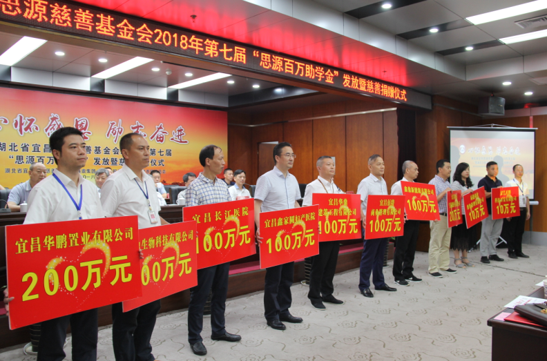 本网讯(通讯员 朱东梅)8月16日,由湖北省宜昌思源慈善基金会、鑫鼎集团、三峡日报传媒集团、宜昌市慈善总会联合举办的2018年“第七届思源百万助学金”发放暨慈善捐赠仪式在鑫鼎集团总部举行,61名宜昌贫困学子领到了共计138万元助学金。