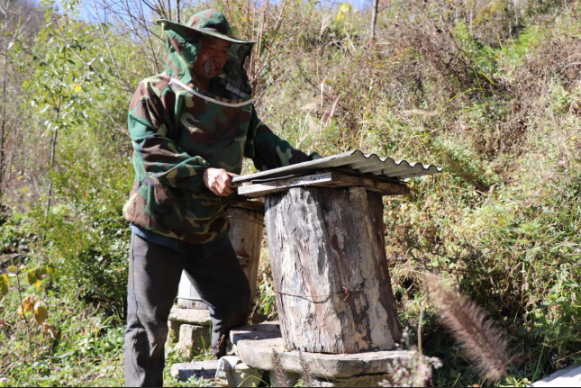 “原来养蜂不能全靠天,更得靠技术啊!”学到技术的他不由得发出感慨。春季如何繁殖分群,夏季如何防治病虫,秋季如何提取优质蜂蜜,冬季如何保暖过冬,他都打理得井井有条。他用学来的养殖技术观察蜂王的培育、判断蜂群的强弱,根据综合情况进行适当的人工干预,大大提高了分群的数量和质量。不仅如此,他在控制蜂王逃跑方面也学有所获,蜂箱从6群到15群,再到35群,明年计划突破50群,呈现出良好的发展势头。去年割了少部分蜜,卖价每斤100元,轻轻松松就收入了一万多元,加上外出务工和中药材的收入,年底他家的收入就已经远远超出了脱贫标准。