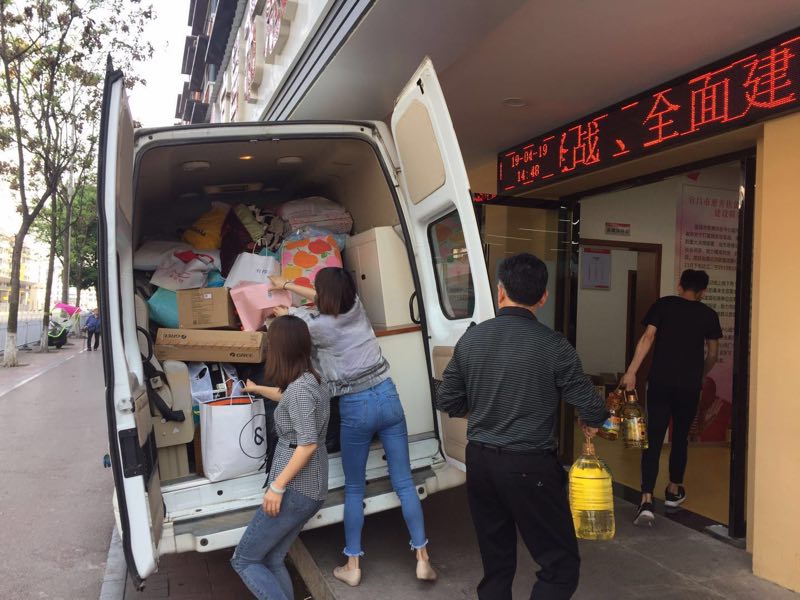 本网讯(通讯员 朱东梅)4月19日下午,一辆装满爱心捐赠物资的面包车停在市慈善扶贫中心超市门口,市税务局的同志将大包小包的衣物、粮油等交给宜昌市慈善扶贫中心超市工作人员。近日来,市慈善扶贫中心超市门前车水马龙,热闹非凡,一件件爱心物资纷纷向这里汇聚……