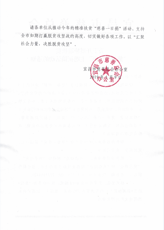 宜昌市慈善总会开展2019年精准扶贫“慈善一日捐”主题征稿活动