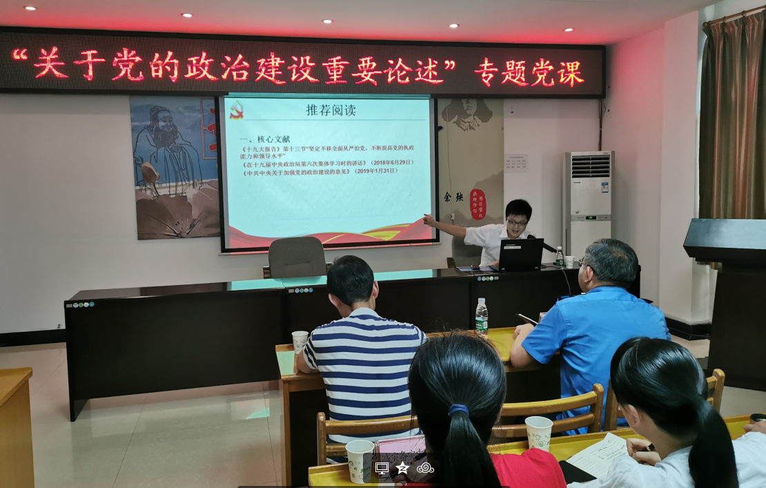 文教授从党的政治建设的概念与意义、深刻认识党的政治建设内涵、加强党的政治建设基本路径等三个方面进行阐述。他用理论与实例并举的方式,阐明了“全面从严治党永远在路上”的意义,告诉大家要“不忘初心、牢记使命”,努力营造良好的政治生态。他指出,要牢牢把握提高政治能力这个根本,始终旗帜鲜明讲政治,坚决维护党中央权威,自觉筑牢理想信念,加强政治历练;始终牢记身份讲党性,加强党性修养,严肃党内生活,严守党规党纪;始终忠实履职讲责任,敢于担当使命,敢于担当责任,敢于担当困难。