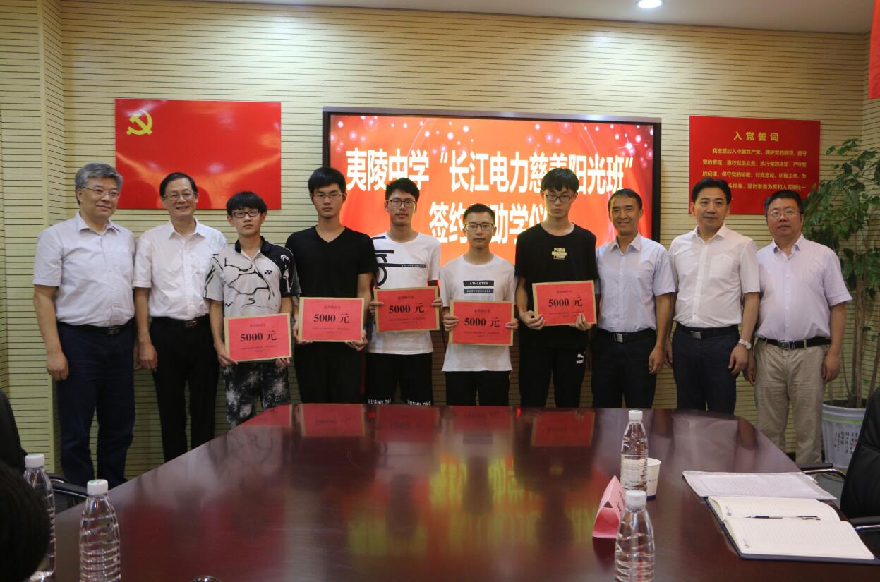 仪式上,中国长江电力股份有限公司捐赠50万在夷陵中学举办“长江电力慈善阳光班”并资助困难学子,余长虹、宋宏伟、高圣奉代表三方签订了资助协议。艾苍松等为夷陵中学今年考上重点大学的部分贫困学生代表每人发放了5000元资助金。