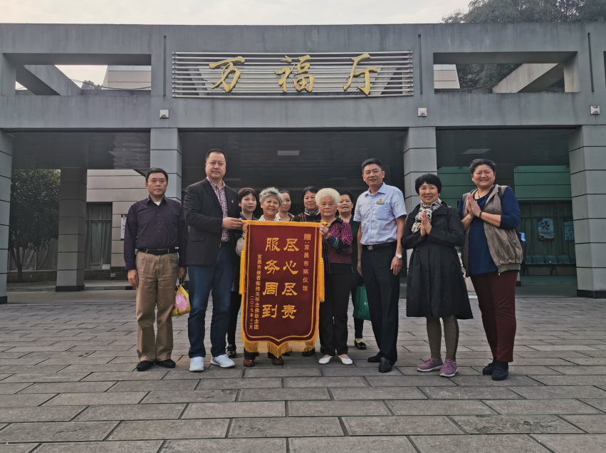 本网讯(通讯员 冯巧钰)11月5日,宜昌市般若临终关怀助念团亲手将一面“尽心尽责,服务周到”的锦旗送到宜昌市殡葬管理所,并对该所工作人员尽职尽责、服务至上的工作作风和态度表示诚挚感谢。