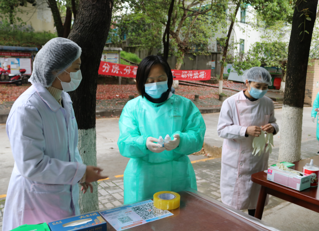 早上7点,工作人员摆放登记信息台、放置口罩、手消、纸巾、消毒液、标签、轮椅、运送推车等物品,准备就绪。