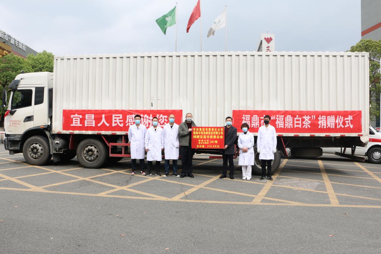 本次捐赠活动由福建省华回集团有限公司、福鼎市南池峰茶业有限公司发起组织,主题为“疫路同行,感恩有你——天使请喝茶”,主要是为了感谢宜昌市抗疫前线的医务人员。“希望一杯温暖的白茶,能让奋战在一线的医护人员缓解疲劳,身心健康。”福建省福鼎市工商联主席涂仙芳说,这批茶叶由华回集团有限责任公司出资购买后捐赠。该公司徐盛兰表示:“华回集团愿意尽一点微薄之力,支援湖北抗击疫情,与湖北人民共克时艰。”