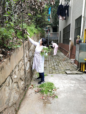 上午八点半,该院全体行管人员按照责任分工,对各自办公室、值班室进行了搬家式清扫和杂物清理,并整理好内务;各区工作人员对老人、儿童生活区进行杂物清理。随后,还清理了室外杂草、杂物,对全院公共区域、老人房间、电梯、扶手等处彻底消毒。