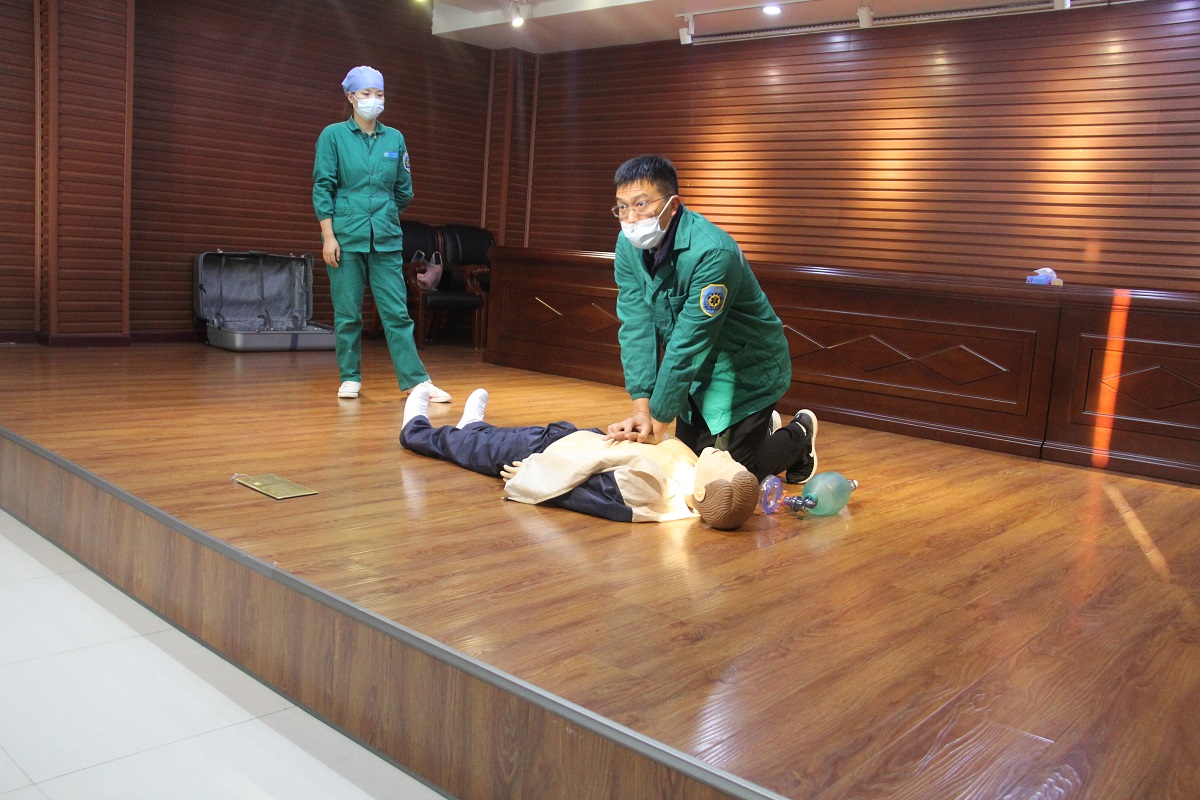 此次培训共分为两个部分,一是理论知识培训,包括心肺复苏以及老年人主要疾病预防;二是心肺复苏的实操演练。首先由熊峰阐述了心肺复苏的原理,并详细说明了心肺复苏的操作步骤。紧接着由杨青春讲解了有关血管疾病、糖尿病、癌症及新冠肺炎的预防措施。最后为了将理论知识转化为实际操作,让一线护理人员能够切实理解心肺复苏的实际操作,徐欣以专用的心肺复苏人体模型为对象,将心肺复苏的实际操作演示了一番。演示完毕后,参训人员两人一组在专业人员的指导下进行心肺复苏的操作,促进一线护理人员对理论知识的理解,充分将理论与实际结合起来。