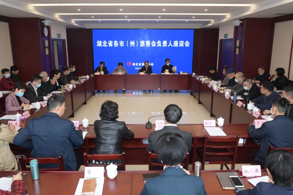 本网讯(通讯员 张涛)为了总结交流疫情防控专项募捐工作,研究探讨后疫情时代的慈善工作,交流协商如何发挥全省慈善组织的整体优势,进一步推动湖北慈善事业高质量发展,湖北省慈善总会于4月13日举行了各市(州)慈善会负责人座谈会,湖北省民政厅党组成员、副厅长赵显富,省慈善总会驻会副会长贾虹、马京芳出席座谈会,宜昌市慈善总会常务副会长余长虹等全省17个市(州)慈善会负责人参加会议。会议由省慈善总会会长陈天会主持。