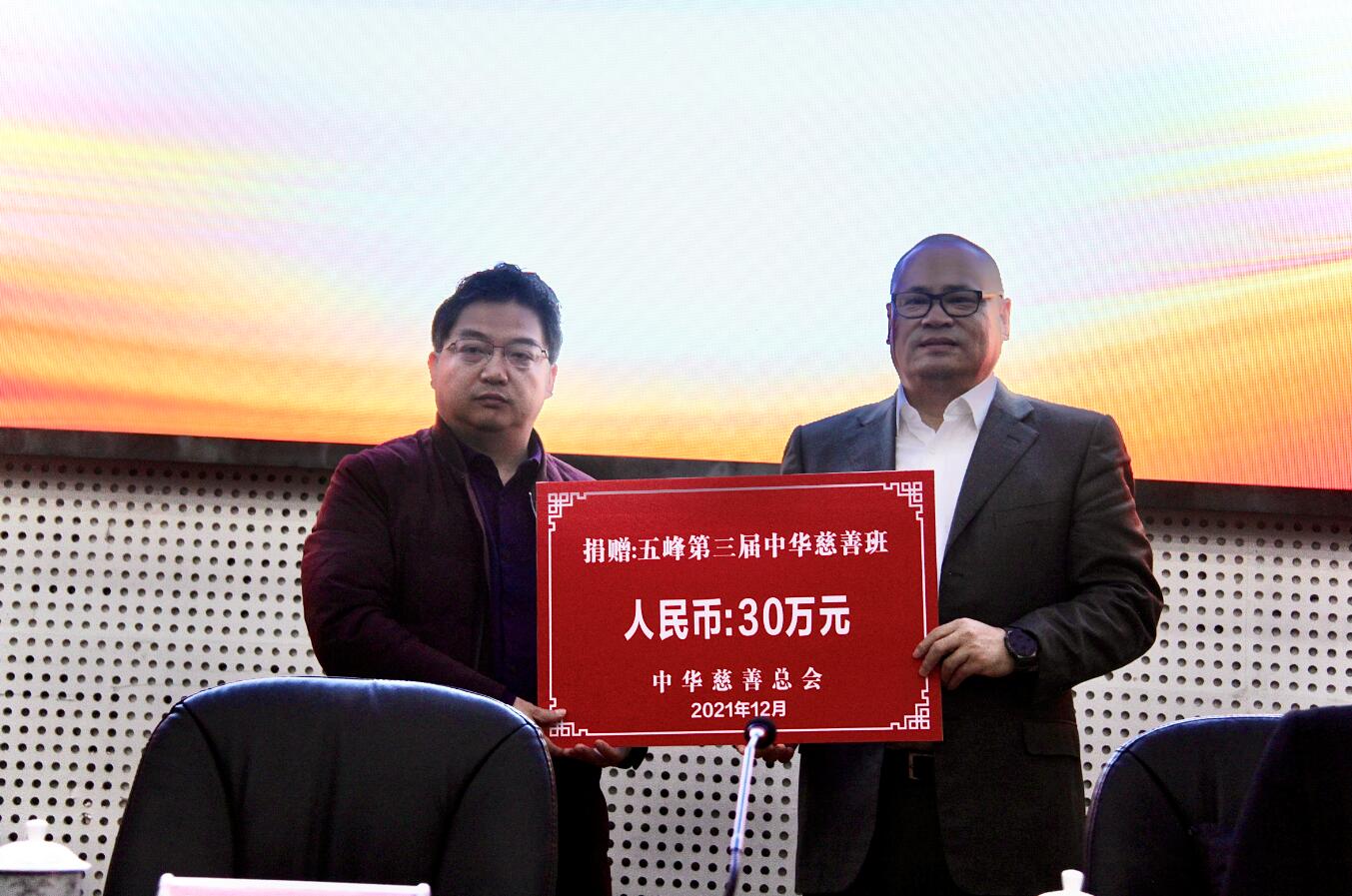 本网讯(通讯员 罗文芬)12月20日,五峰第三届“中华慈善班”捐赠仪式在五峰土家族自治县高级中学举行。中华慈善总会荣誉副会长徐镱轩,中华慈善总会新闻界志愿者慈善促进工作委员会副秘书长周志芬,五峰土家族自治县人民政府副县长王进,县教育局党组成员、工会主席宋芳蓉,县高级中学校长吴锡斌、副校长余新卫,县慈善协会副会长杨莉莉、秘书长李治斌,县高级中学部分师生参加仪式。