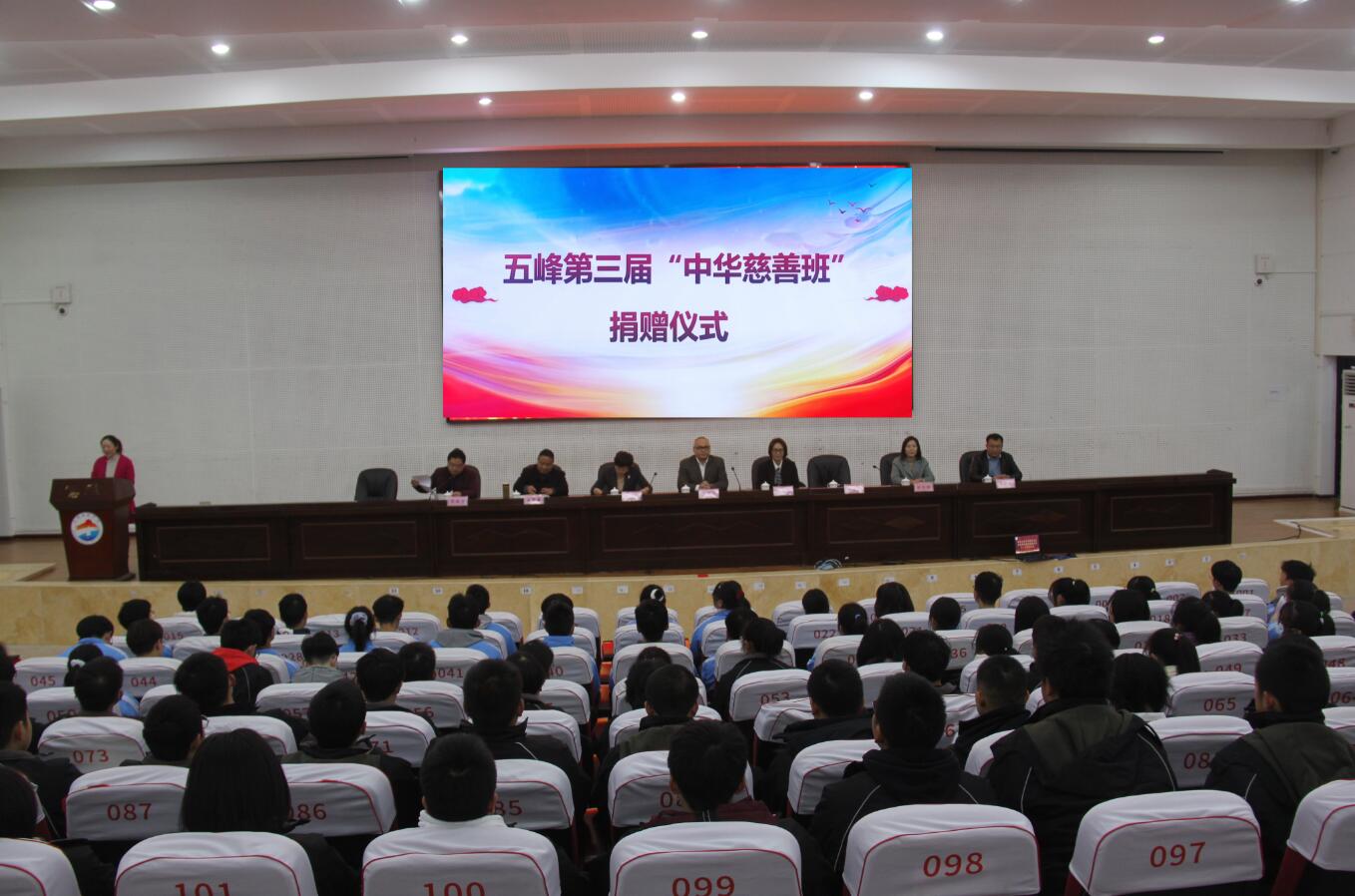 王进在仪式上介绍了五峰近年来的发展情况,她希望受助学生借慈善的东风,鼓起奋斗的双翼,以进取者的姿态努力学习,用优异的成绩回报社会。副校长余新卫代表学校表态,一定用好善款,努力创造条件让“中华慈善班”学生健康成长。学生代表王建琳表示会以优异的成绩回报中华慈善总会对他们的关爱和帮助。