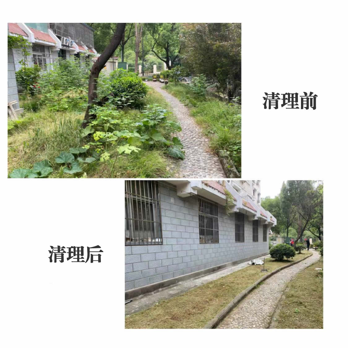 清理杂草是此次志愿服务活动的一项重点工作,由于此小区杂草长期无人清理,杂草丛生,严重影响小区居民生活。杂草清理小组十余名志愿者兵分两路展开行动,杂草较长、较集中的地方通过割草机来清理,机器无法清理的角落由志愿者一一人工拔除。经过整整四个小时的努力,小区杂草全部清理干净,小区面貌焕然一新。