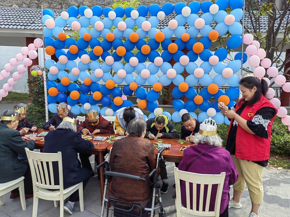 花园里火红的枫树、金色的银杏树,给生日会增添了几许诗意,美丽的气球墙,让户外生日尽显仪式感。33名老寿星欢聚一堂,唱生日歌、吹生日蜡烛、分享生日蛋糕,老人们欢声笑语不断。金灿灿的银杏树下,社工们指导老人们用马克笔在树叶上作画,一只只美丽的“花蝴蝶”、一朵朵精致的“玫瑰花”、一把把可爱的“小扇子”在老人们的巧手下活灵活现。93岁高龄的老寿星冯奶奶,对着镜头开心地展示自己的彩绘作品,脸上洋溢着孩子般的笑容,老人们纷纷表示自己跟家里的曾孙一样,上起了“幼儿园”。在福利院生活了10多年的王奶奶拉着社工的手感叹道,福利院环境好,工作人员每个月都费尽心思为我们老人庆祝生日,在这里生活幸福感很强。