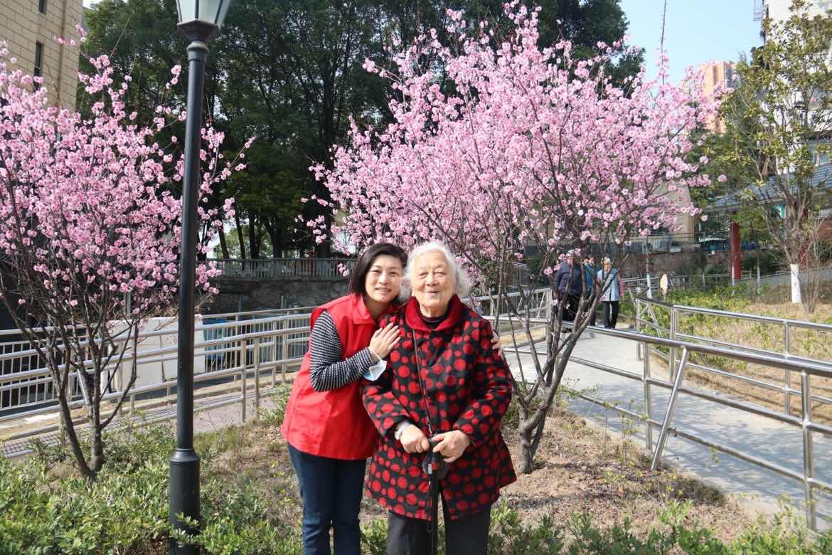 活动中,志愿者们纷纷走进老人房间,去到老人身边。有的搀扶老人在院子里一边散步,一边欣赏福园美景;有的陪伴在卧床老人床边,倾听老人讲过去的往事,给老人分享实事热点信息;有的耐心听老人拉家常,为老人捶背、按摩、剪指甲;有的热情询问老人的需求,帮老人购买物品;有的通过手机进行亲情连线,帮助老人与远在异乡的家人和朋友在线会面... ...院子里,随处可见的志愿红在温暖的阳光下显得格外艳丽,妆点了福园的春色,呈现出一片和谐、温馨的美景,也让春日的暖意注进了爷爷奶奶们的心里。