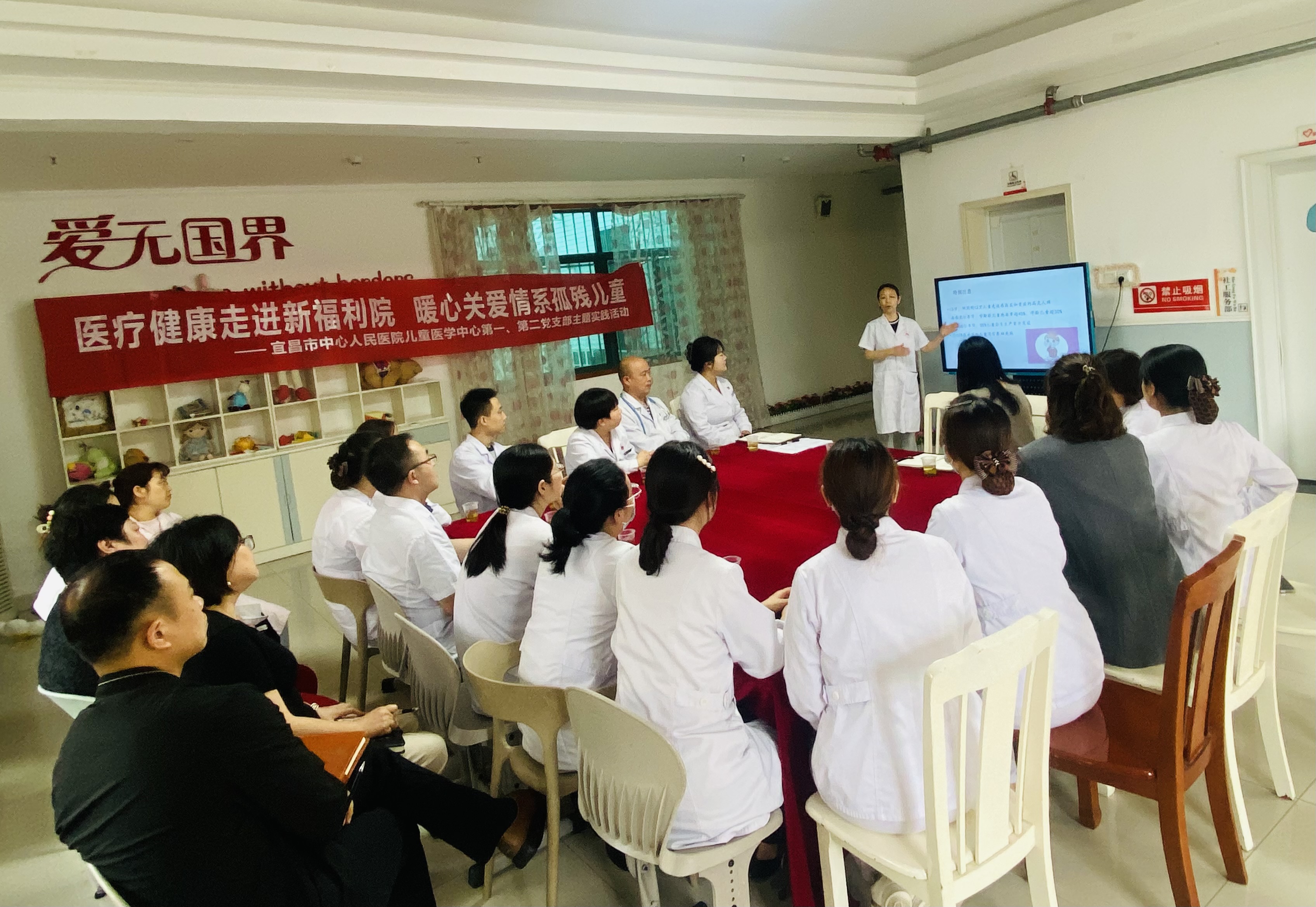 本网讯(通讯员 陈婕)5月4日下午,宜昌市中心人民医院儿童医学中心第一党支部、第二党支部走进宜昌市儿童福利院,开展“医疗健康走进新福利院,暖心关爱情系孤残儿童”主题活动,并为孩子们送上学习用品和体育用品。