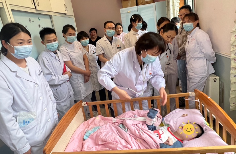 讲座结束后,儿童医学中心医护党员一起走进儿童生活区,进行本场活动的最后环节——查房会诊,专家团队对院内特殊重病患儿进行会诊,对长期卧床的患儿提供卧位和皮肤护理的指导。