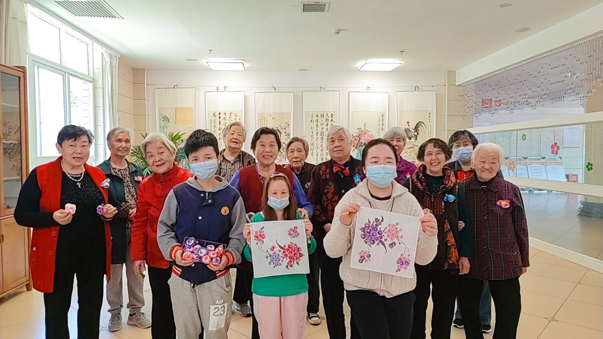 社工小李说,用印花手帕作为节日礼物,主打一个怀旧情节,唤起奶奶们年轻时的美好回忆,让她们保持对生活的热诚和活力。折成玫瑰胸花送给奶奶们,更体现出福园亲亲儿女们对奶奶们的一份“别有用心”。当得知了玫瑰胸花的制作过程和寓意,杨奶奶满怀感激地说道:“谢谢你们,这个礼物太好看了,太有创意了。有你们这群贴心的儿女们,我们在福利院生活天天都很开心。”