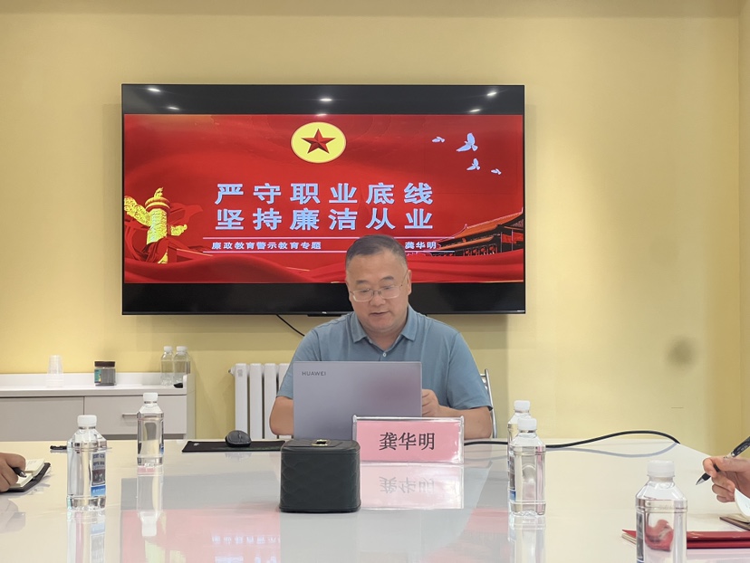 龚华明以“严守职业底线 坚持廉洁从业”为主题,以认识新形势下反腐败斗争形势开篇,图文并茂、形象生动地阐述了腐败出现的原因、危害、防范措施以及如何增强党员领导干部拒腐防变的能力等,并结合工作中常见的问题,运用鲜活的典型案例,为全体党员讲授了一堂内容丰富、意义深刻的专题党课。他强调,全体党员干部特别是领导干部要以身作则,严守职业道德底线,始终保持严谨务实的作风和廉洁自律的品格,以实际行动争做廉洁从业表率。他要求,要树牢规矩意识,锤炼政治品格,将廉洁自律规范内化于心,外化于行;要主动担当作为,切实做到知责于心、担责于身、履责于行;要守住道德底线,不碰纪律红线,自觉抵制不良风气。