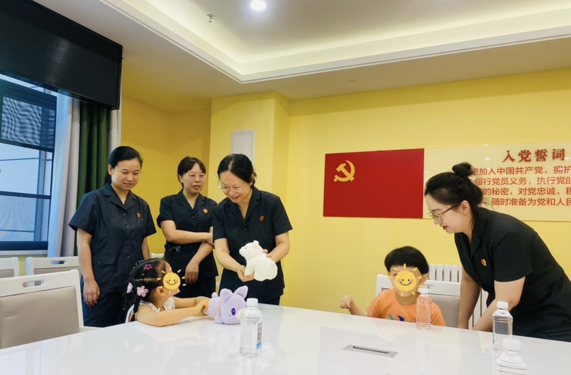 马丽娟一行先后参观了该院党建文化阵地、康复区、医疗区及教育区等功能区域,详细了解了孩子们的学习、生活及身体状况,并对2名服务对象进行了实地回访。随后,在会议室召开的座谈会上,两院就未成年人权益司法保护、未成年人法治教育等问题展开充分交流与讨论,结合该院困境儿童面临的现实法律难题进行深入的剖析。马丽娟表示,希望与该院建立长期的协作关系,立足儿童需求,通过“模拟法庭”和“开放日”普法活动的形式给院内儿童提供现实的法治教育指导,提升未成年人自我保护能力及水平,共同推动未成年人保护体系建设。