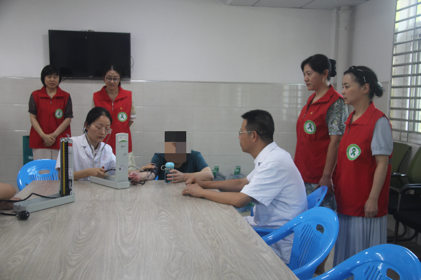 考察中,市第二社会福利院副院长王孝成分别从建院历史、整体规划、服务模式等方面详细介绍了该院的基本情况。双方就服务对象日常照护、队伍建设、康复护理、膳食服务等等方面深入交流了经验。随后,考察组在服务区为服务对象进行了血压测试、问诊及用药指导、饮食指导。