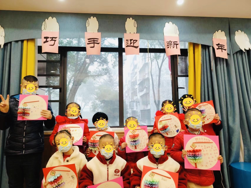 活动伊始,社工通过有趣的故事给孩子们讲述了元旦佳节的由来,带领孩子们一起做了律动手指操,孩子们扬起笑脸,举着小手,投入地跟随着音乐一起律动着,为手工灯笼的制作做足了准备。看到桌面上摆放的制作材料,孩子们充满了好奇,“哇!好好看!”“我也要做!”在社工的带领下孩子们认真地做着每一个步骤,年龄大的孩子也主动承担起小帮手的角色,最后按照各自的喜好用彩笔画上了画,写上了新年祝福。“看,这是我做的!”孩子们自豪地互相展示着自己的作品,开心的笑容一直停留在脸上。