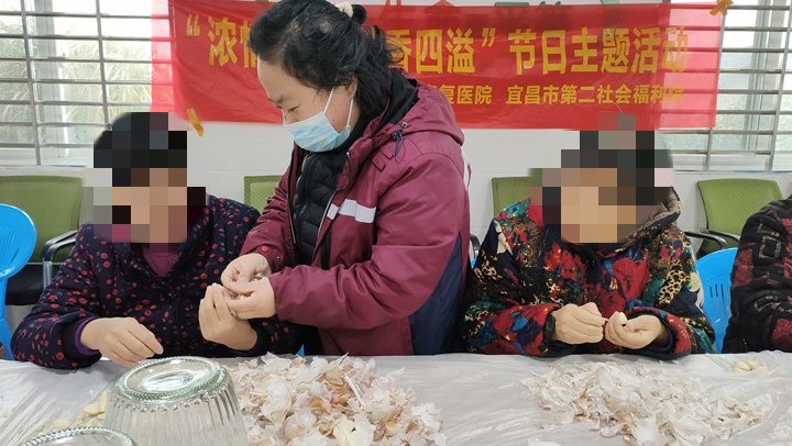 本网讯(通讯员 李尉 吴燕华)农历十二月初八是我国传统节日“腊八节”在这一天人们喝腊八粥、做腊八蒜,感受腊八节的魅力,为了让服务对象感受到节日的氛围,1月18日,宜昌市第二社会福利院联合宜昌馨语康复医院共同开展了“浓情腊八 蒜香四溢”腊八节主题活动。