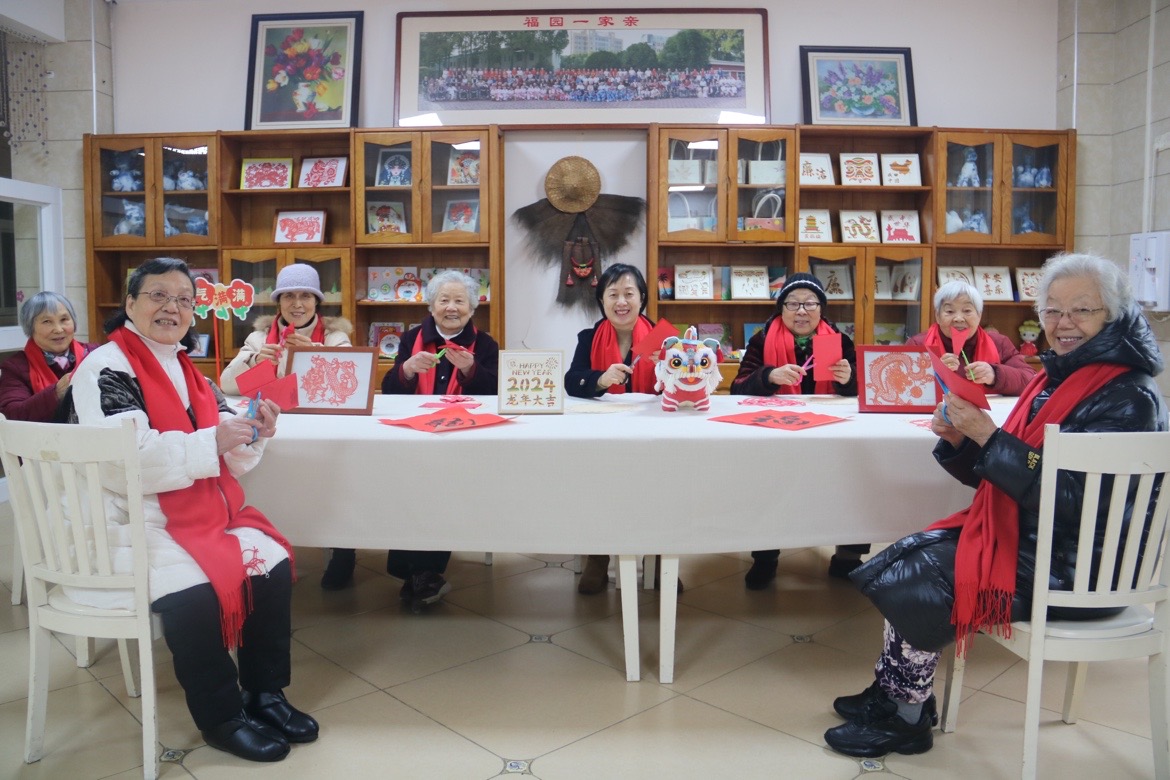 春节是团聚的佳节,阖家团圆是每个人的心愿,但是为了不回家过年的老人在福园也能过上温暖的春节,护理员们舍小家为大家,坚守在岗位一线,不打折扣的为老人们提供服务。院内社工先后开展“非遗竹编画”“写春联”等新春主题活动10余场,老人们过上一个快乐暖心的“幸福年”。“要让入住老人都能感受到家的温馨与欢乐。”这是党支部书记、院长熊长英最大的心愿,为了让老人们能感受到家的温暖,在春节期间安排了社工活动,还准备了年夜饭、小礼品,大家一起过了个幸福年。