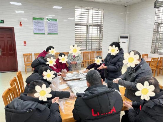 “把面团中间按一个窝,加入馅料,再搓成圆形。馅料不要放太多,要轻轻地搓,不然容易散开。”社工向服务对象示范如何包汤圆,并耐心地传授技巧。服务对象们积极参与,有的看着面团冥思苦想,有的互相讨论,积极尝试,经过大家的巧手,一个个圆滚滚、白胖胖的汤圆很快就做好了。随后,工作人员将煮好的汤圆分发到每一位服务对象手中,大家品尝着香甜可口的汤圆,分享着制作过程中的趣事,欢声笑语不断。