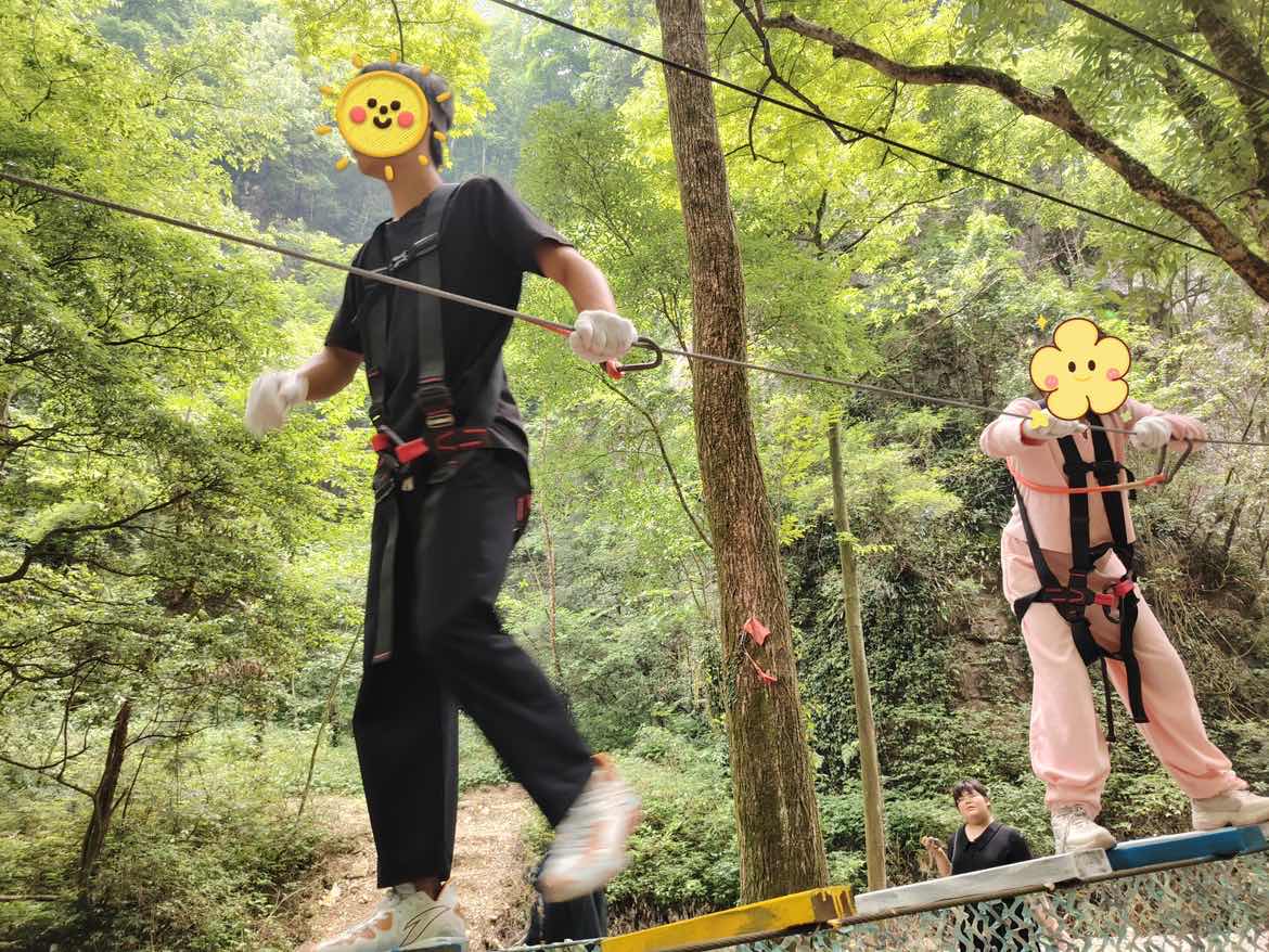 紧接着是“野外拓展”环节,孩子们克服恐惧,挑战了一项项空中穿越项目,脸上的表情由眉头紧锁慢慢变为微笑着嘴角上扬。