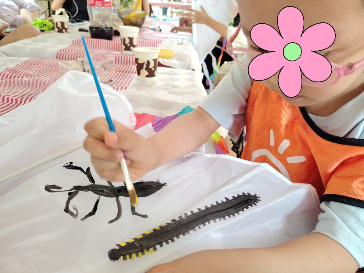 午餐后,活动进入了风筝涂鸦环节,孩子们与“亲亲妈妈”一起在风筝上涂抹青春的色彩,记录美好的时光。