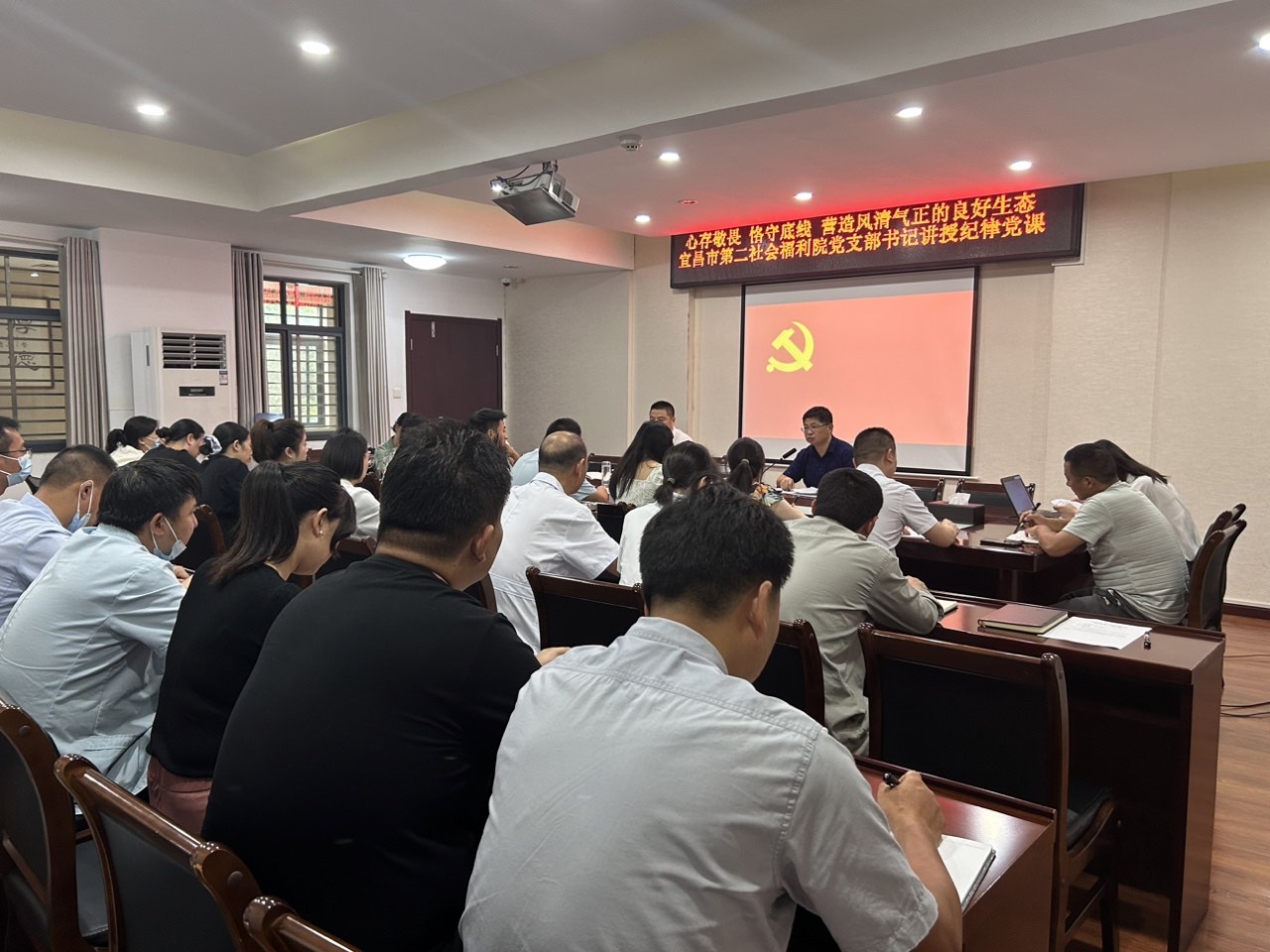 本网讯(通讯员 李尉)为进一步推进党纪学习教育走深走实,引导干部职工认真学纪、准确知纪、自觉明纪、严格守纪,6月21日下午,宜昌市第二社会福利院牵头负责人孔剑锋为全体干部职工讲授了一堂内涵丰富的纪律党课。