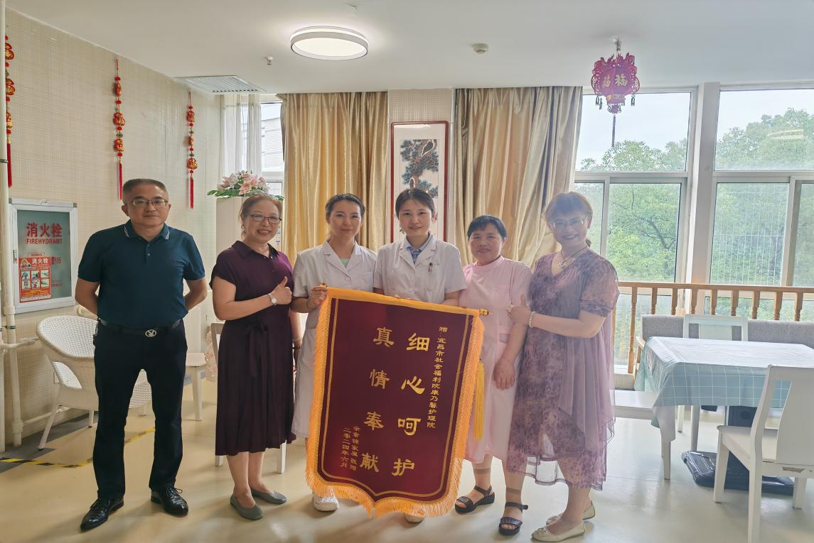 长者家属向宜昌市社会福利院康乃馨护理院赠送锦旗
