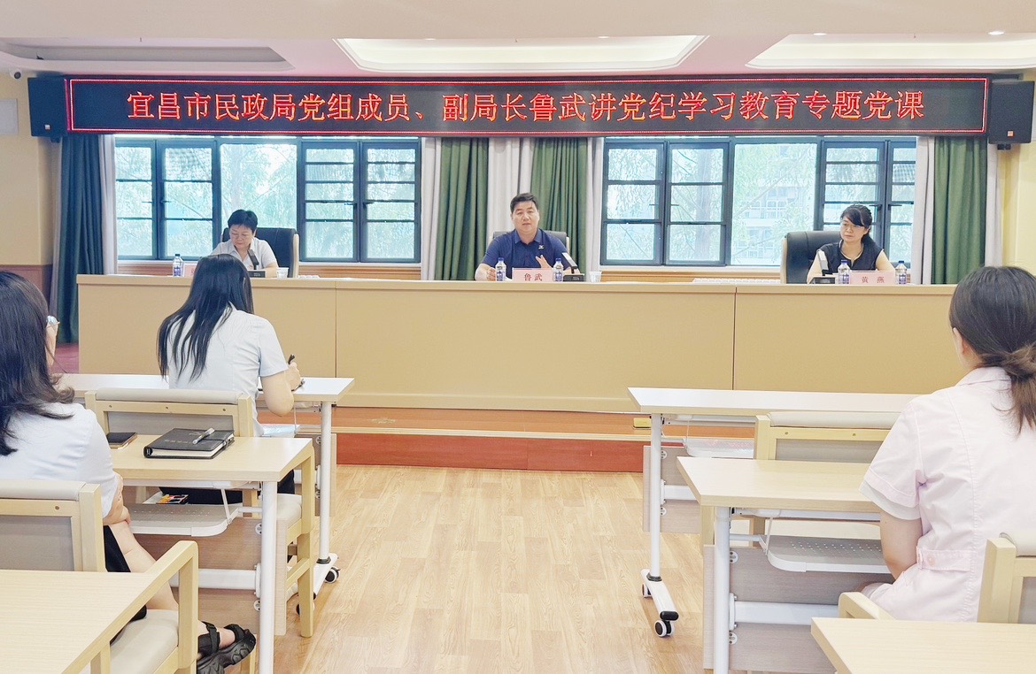 本网讯(通讯员 吴珊珊)近日,宜昌市民政局党组成员、副局长鲁武来到宜昌市儿童福利院,以“强化党纪意识 严守纪律红线 为推动民政事业高质量发展提供坚强纪律保障”为题讲授专题党课。宜昌市儿童福利院全体党员参加。