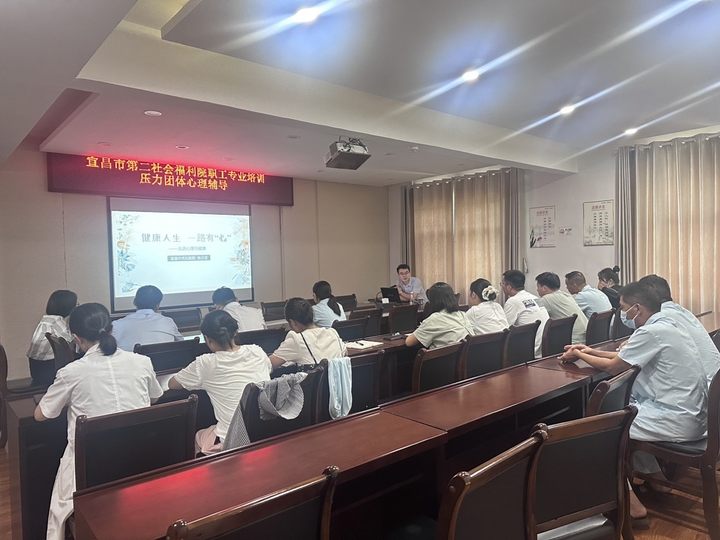 本网讯(通讯员 杨德琴)8月9日下午,宜昌市第二社会福利院特邀资深心理治疗师张少龙,开展了以“健康人生,一路有‘心’”为主题的团体压力心理辅导培训。此次培训旨在关爱职工心理健康,提升职工应对压力能力。